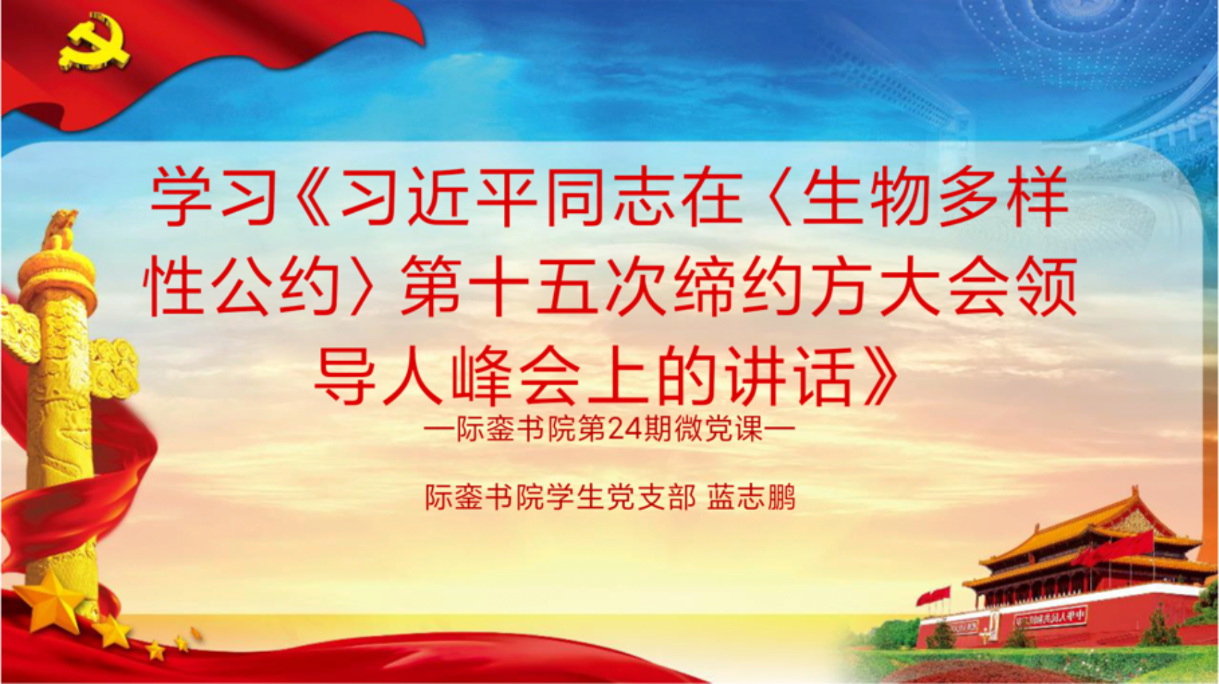 | 【微党课】际銮书院第二十四期微党课——学习《习近平同志在〈生物多样性公约〉第十五次缔约方大会领导人峰会上的讲话》 |