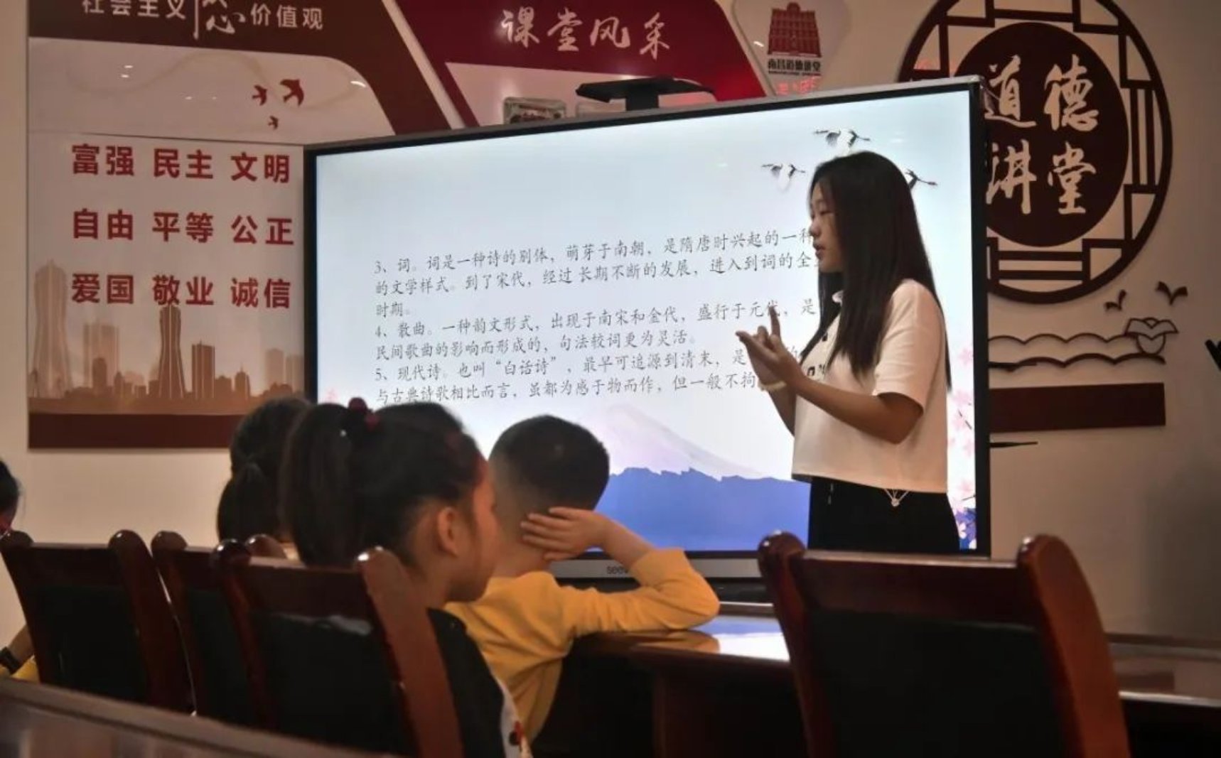 图/志愿者为小朋友们讲述古诗词的形式
