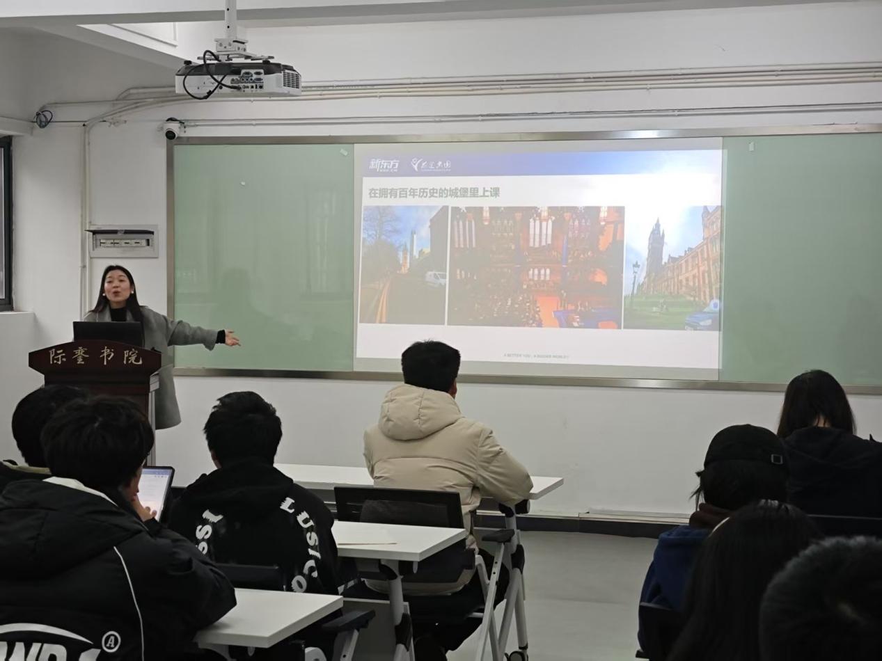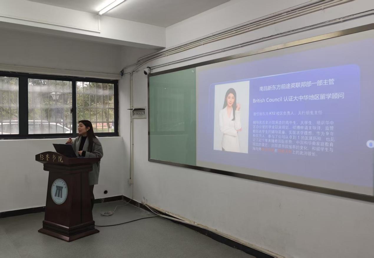 3月15日,英语沙龙第二十九期——“留学知识大普及”活动在致新阁成功举办。 新东方的徐慧佳老师从多维度的人生发展视角出发,向在场的学生们详尽介绍了与国内升学路径不同的留学途径。她深入分析了德国、澳大利亚等多个国家以及不同地区的留学背景和当地高校的特色。随后,徐老师向学生们展示了留学申请所需准备的材料,并着重指出了英语能力的重要性。同时还向同学们分享了具有各国地域特色的精美图片。最后,徐老师依据时间轴,向学生们展示了推免、考研以及留学的未来规划图。 此次讲座不仅为学生们开拓了视野,也为他们的生涯规划提供了丰富的启发。