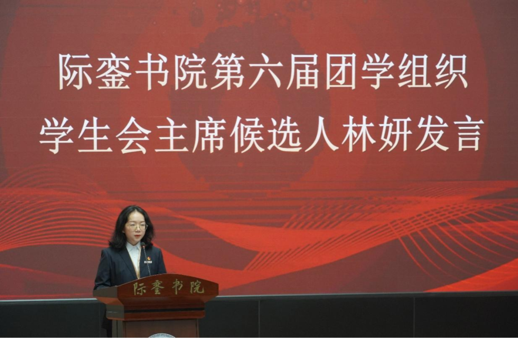第六届团学组织学生会主席候选人林妍代表第六届团学组织发言,她就院训向第六届团学组织全体成员提出了“博学不穷、切问近思、笃行不怠”的三点要求,希望团学组织成员们能全心全意为同学服务,真真切切将工作落到实处,尽心尽力顾全书院大局,并为了际銮书院这艘“风帆”能够乘风破浪而整装待发,行而不辍。