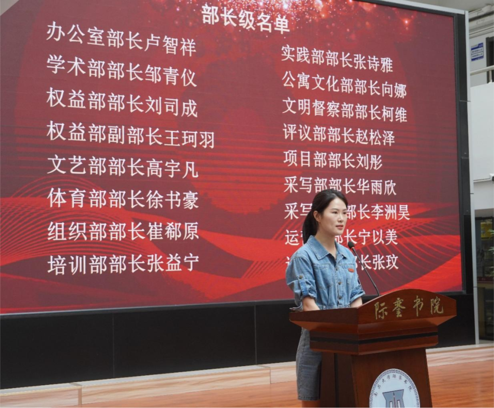 图/学生团委副书记杜思远 不忘初心,扶摇直上 团委负责人刘越老师宣读了际銮书院第六届团学组织主席团候选人、部长级成员名单。