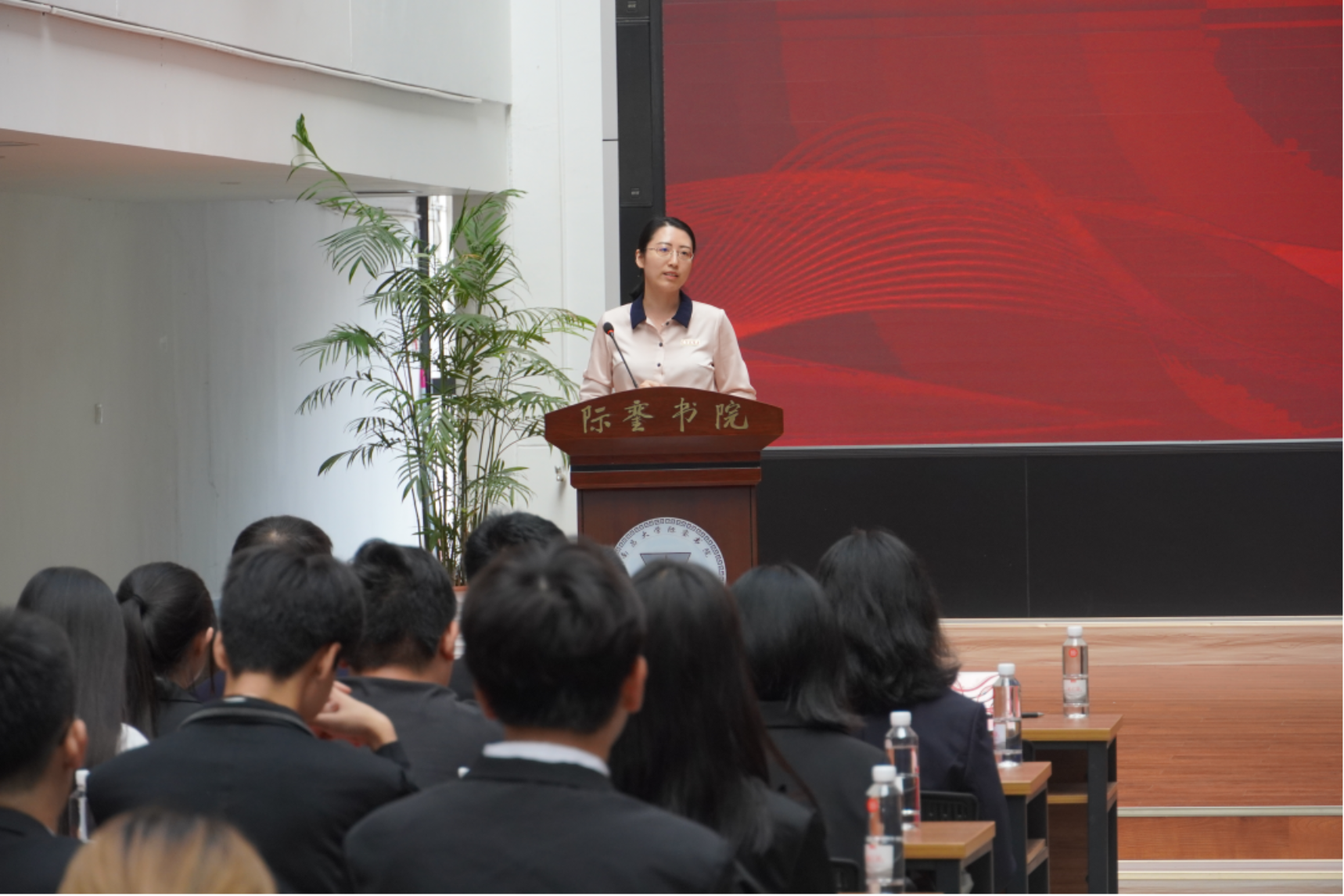 图/学生会主席候选人林妍 继往开来,鹏程再举 书院党委书记聂瑞筠作总结讲话。她指出,在工作与学习的平衡中,应乐于奉献,品味收获,为同学服务的同时提升能力;在个人与组织的关系中,应听从组织安排,将工作与成长相结合,借助团学组织的平台厚修才干。同时在两届团学组织的新旧交替中,应学习往届团学组织的优良作风,传承实干精神,少一分空洞的形式,多几分实在的真心,在不断反思中提升。最后,聂瑞筠对第六届团学组织的工作予以嘱托,希望全体成员能和书院学子们一起接过前辈们的旗帜,与书院共赴更光明的未来。
