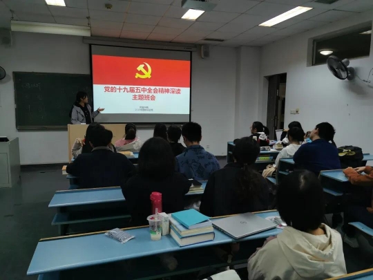 下面是朱怡璇同学的感想节选: “我至今仍旧记得那堂课,是我第一次了解到关于抗美援朝战争的细节,同学们慷慨激昂,潸然泪下。抗美援朝的胜利,是多方因素综合的结果,有党的正确领导,有战士们并肩作战的热血,也有国际局势的推动,但我们最不该忘却的就是当年中国人民的爱国之心。如今时代变迁,我们随处可见抹黑英雄、忘却历史的事件。我们应该要时刻反省,自己是否还存有十年饮冰难凉热血的激情,是否还有以国为国,以天下为天下的抱负。盛世国泰民安,而这并不是你我怠惰的理由,我们更该秉持江山不负英雄泪,且把利剑破长空的信念,让自己化为一束至纯至强之光,照亮后人前进的道路。” 二.“学习党的十九届五中全会精神”主题班会 2019级国学实验班召开了学习党的十九届五中全会精神的主题班会,党的十九届五中全会是在“两个一百年”奋斗目标的历史交汇点上召开的重要会议,既总结了以往的十三个五年计划的得失经验,又描绘了发展蓝图,做出了战略部署,助力夺取全面建设社会主义现代化国家的新胜利。在这次主题班会中,同学们深深感受到了党的先进性和人民勇往直前的魄力。